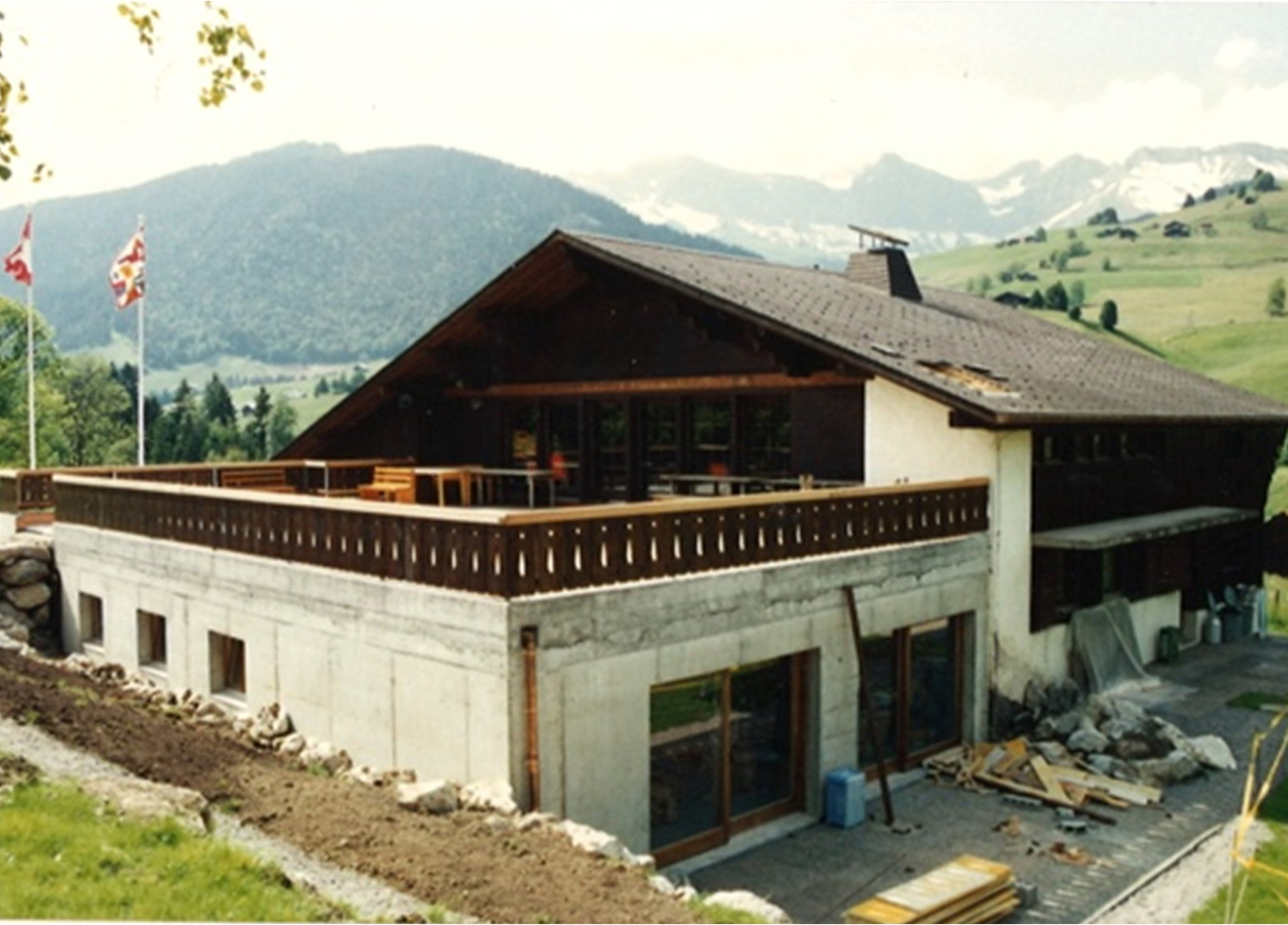 S’en est suivi la construction d’une nouvelle route s’éloignant du chalet et la création d’un parking. Les normes techniques, légales et particulièrement les exigences de l’ECA (incendie) nous contraignent à effectuer une transformation en profondeur du bâtiment. Le permis de construire pour la transformation du bâtiment a été délivré en en novembre 2021. La démolition/reconstruction a réellement débuté en mars 2024 pour se terminer en juin 2026.