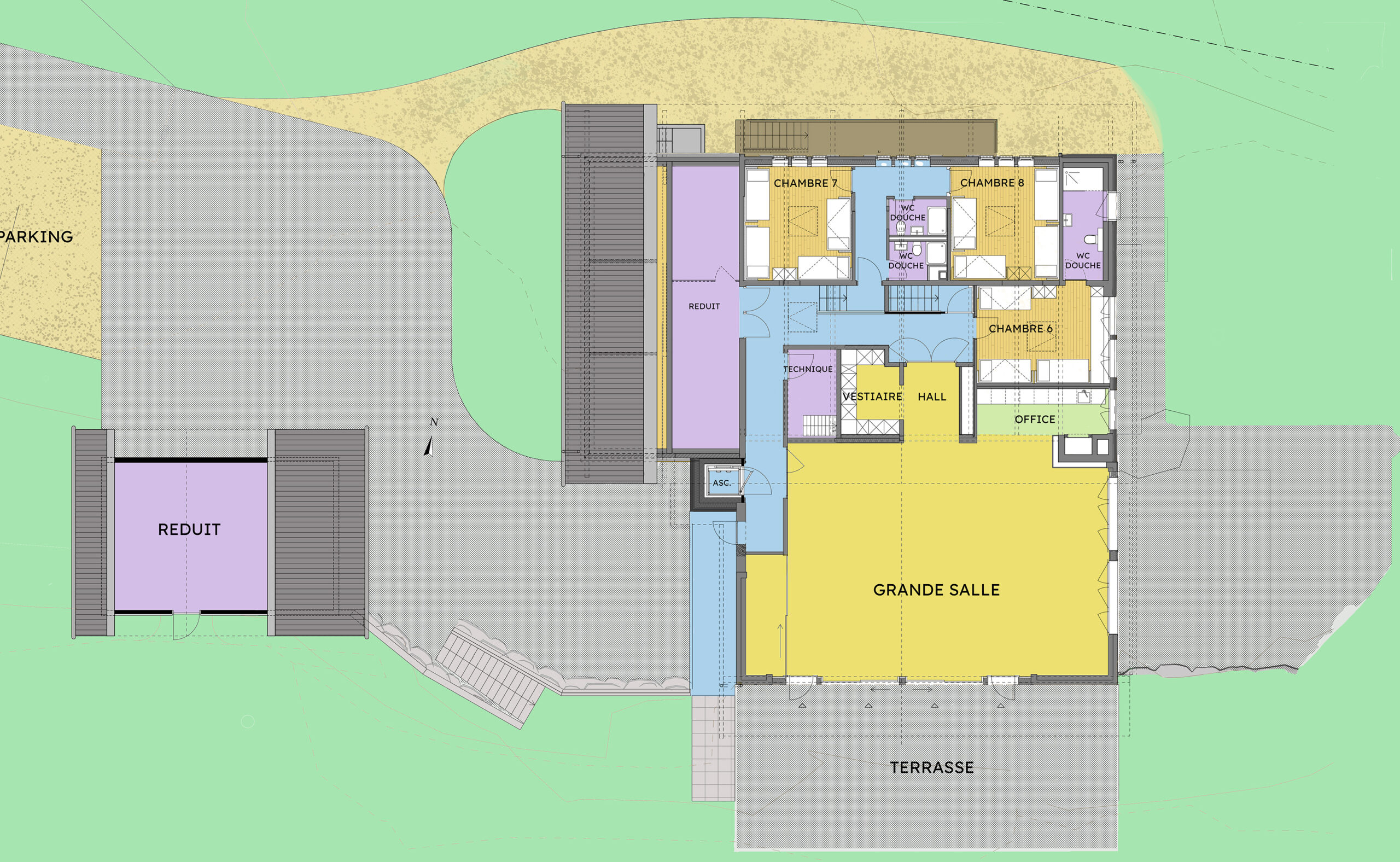 • Grande salle polyvalente équipée comprenant 100 places assises et terrasse.